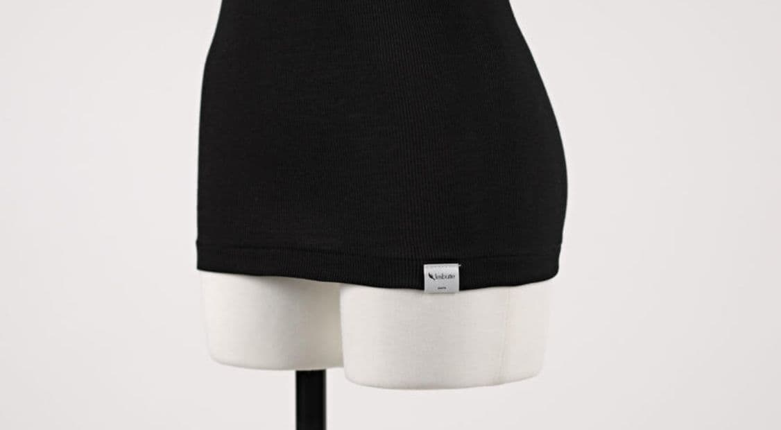 綿100%の薄くて柔らかい素材を使用した洗濯ネームは、素肌に触れにくい裾部分に縫い付けました。