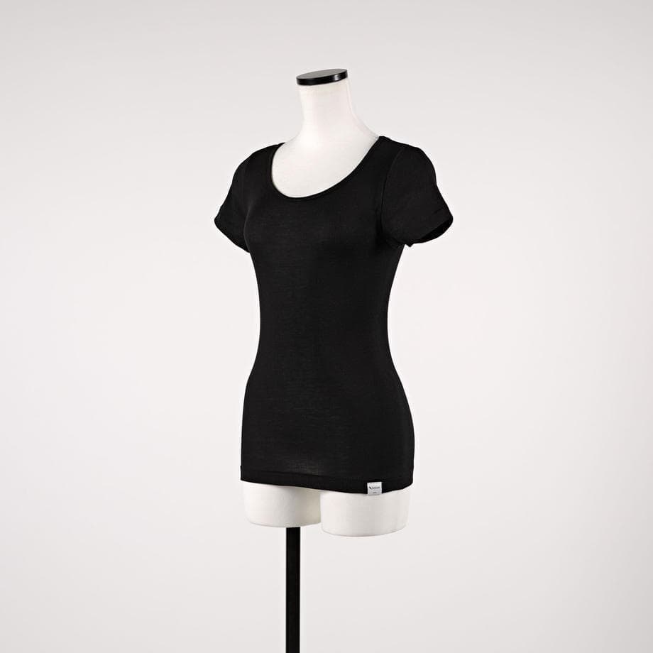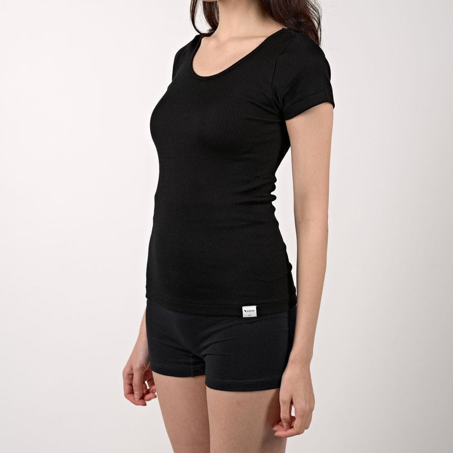 ラウンド型のネックラインは、首からフェイスラインをスッキリと見せるため、「狭からず、広からず」ちょうどいい感じのネックラインに仕上げています。アウターの胸元から見えても肌着っぽくなく、着こなしをさりげなく引き立てるシンプルな存在感が◎