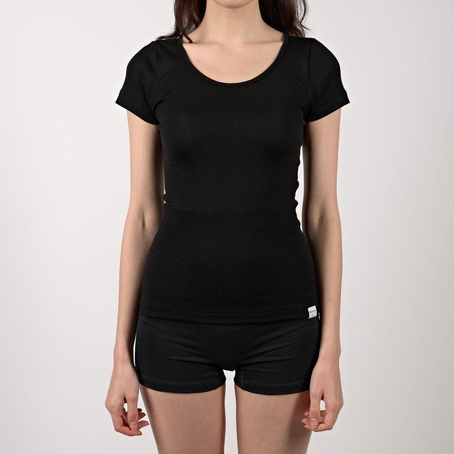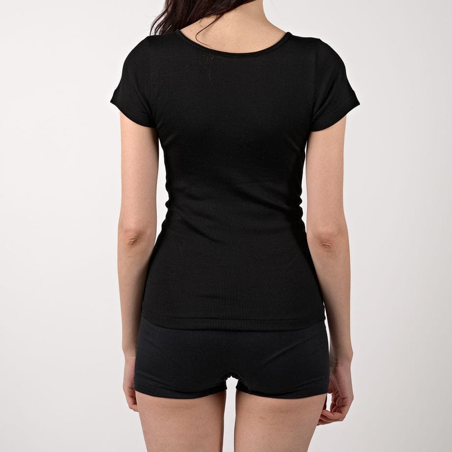 丸編みの編機で筒状に仕上げているので脇縫いがなく、縫い目が肌にあたる事なく快適な着心地です。