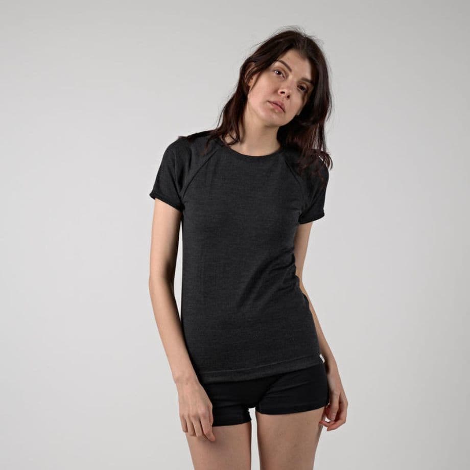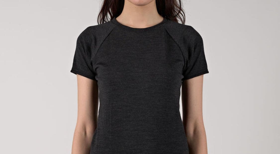 Tトップ感覚で着用できるように、少し詰まったネックラインにこだわりました。アウターから見せても下着っぽいない衿開きです。