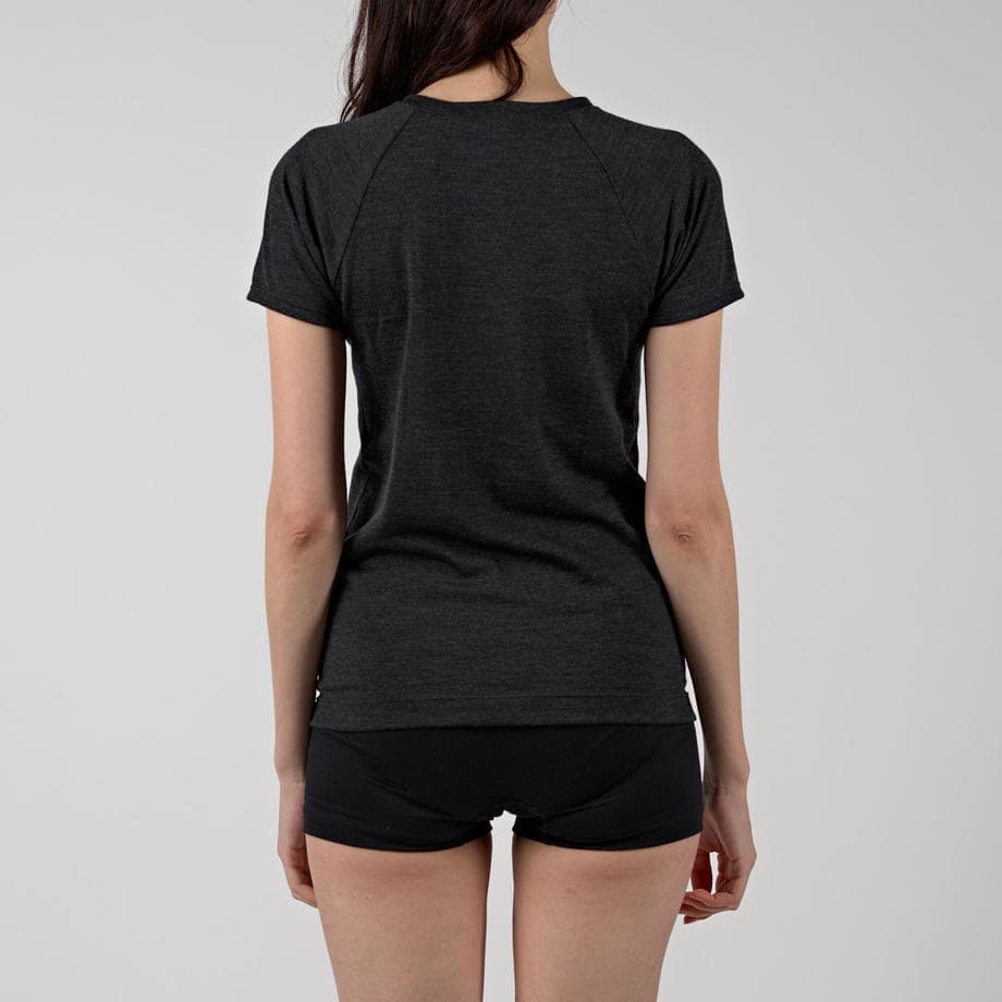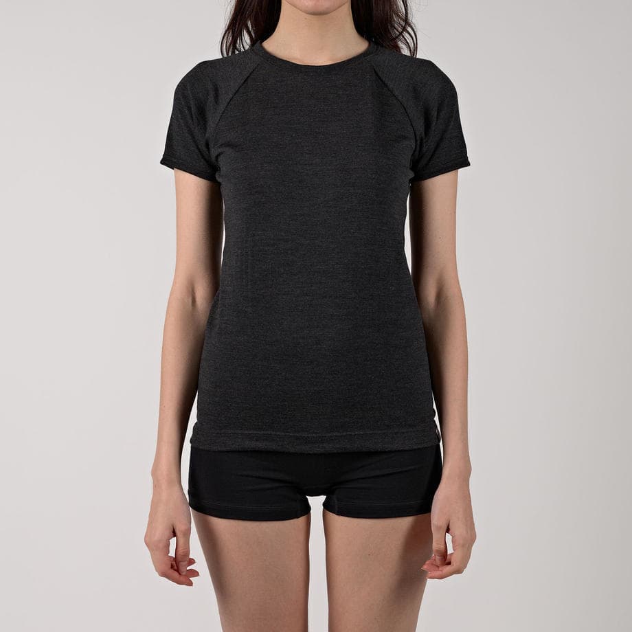 Tトップ感覚で着用できるように、少し詰まったネックラインにこだわりました。アウターから見せても下着っぽくない衿開きです。