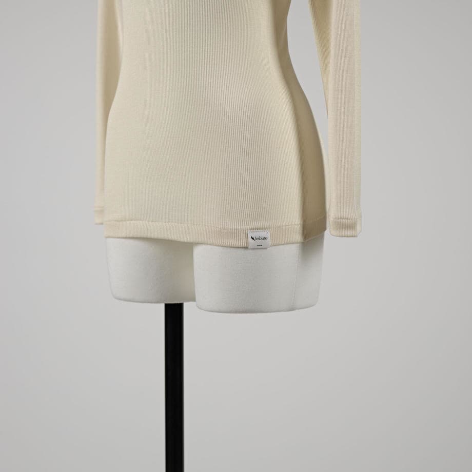 糸を選ぶ段階から素肌に良い品質のモノを選び、日本に数台しかない編機でゆっくり、コトコト時間をかけて編むことで独特の優しい風合いが生まれます。lesbutteのシルクリブはウォッシャブルシルクを使用しています。お洗濯を繰り返しても風合いが変わらず永く愛用いただけます。