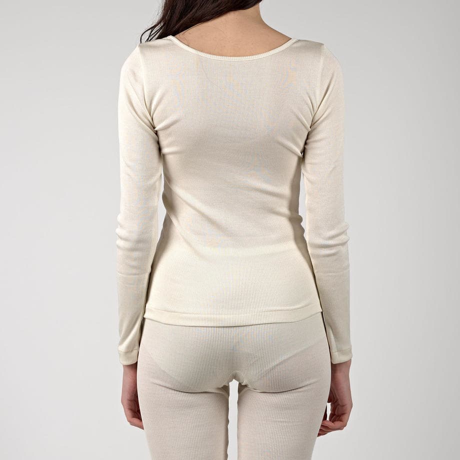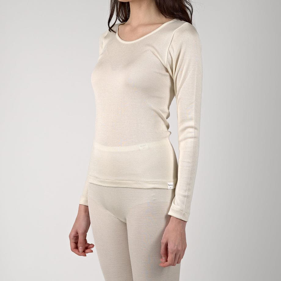天然の調温効果をもつシルクは夏は涼しく、冬は保温性に優れ、季節を問わず肌にもっとも馴染みやすいのです。季節の変わり目にちょうどいい肌心地のロングスリーブをご用意しました。