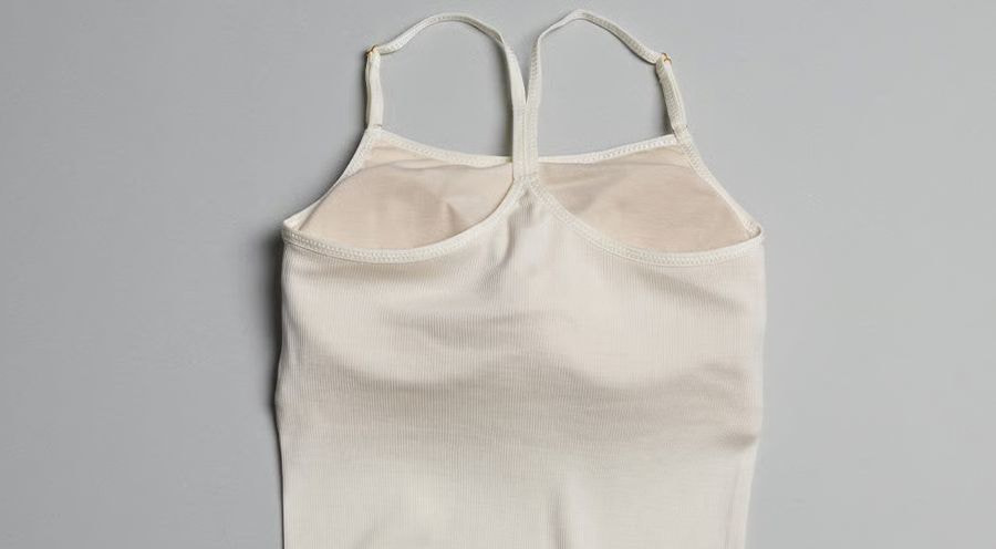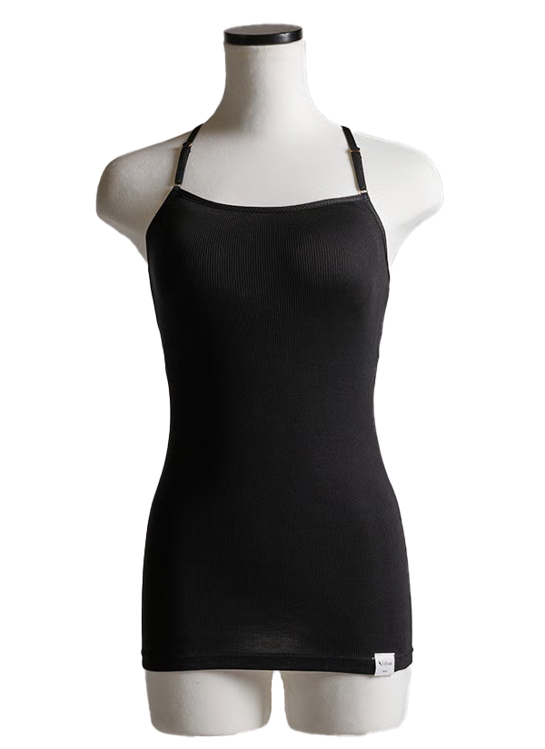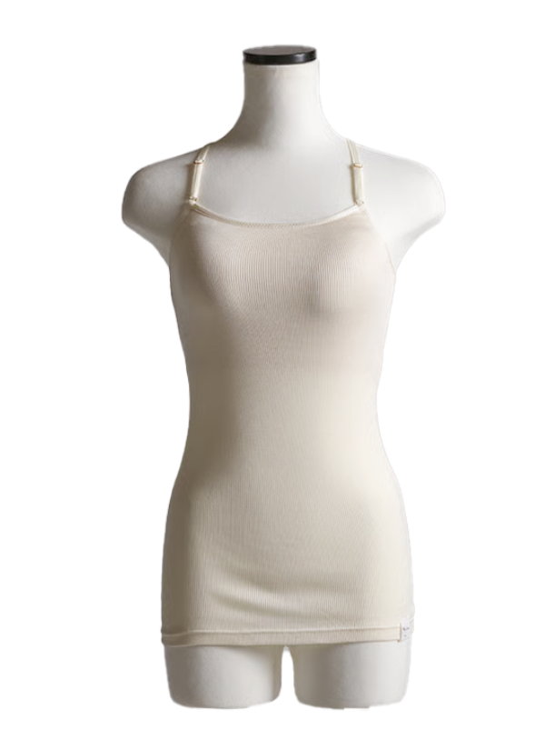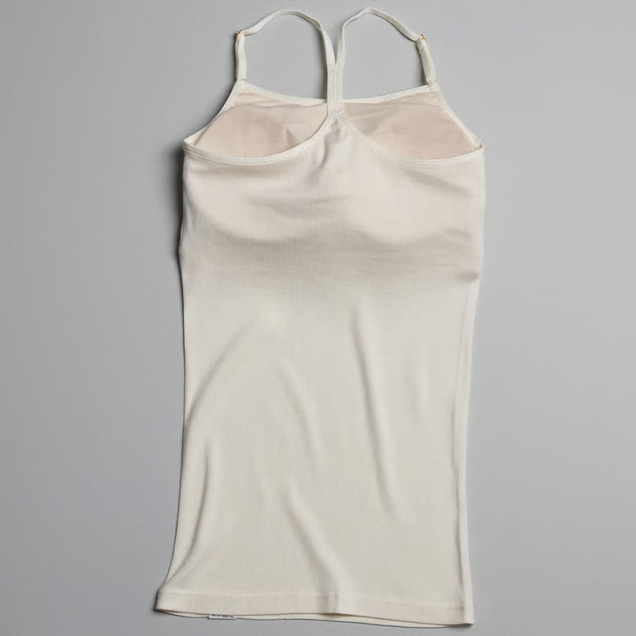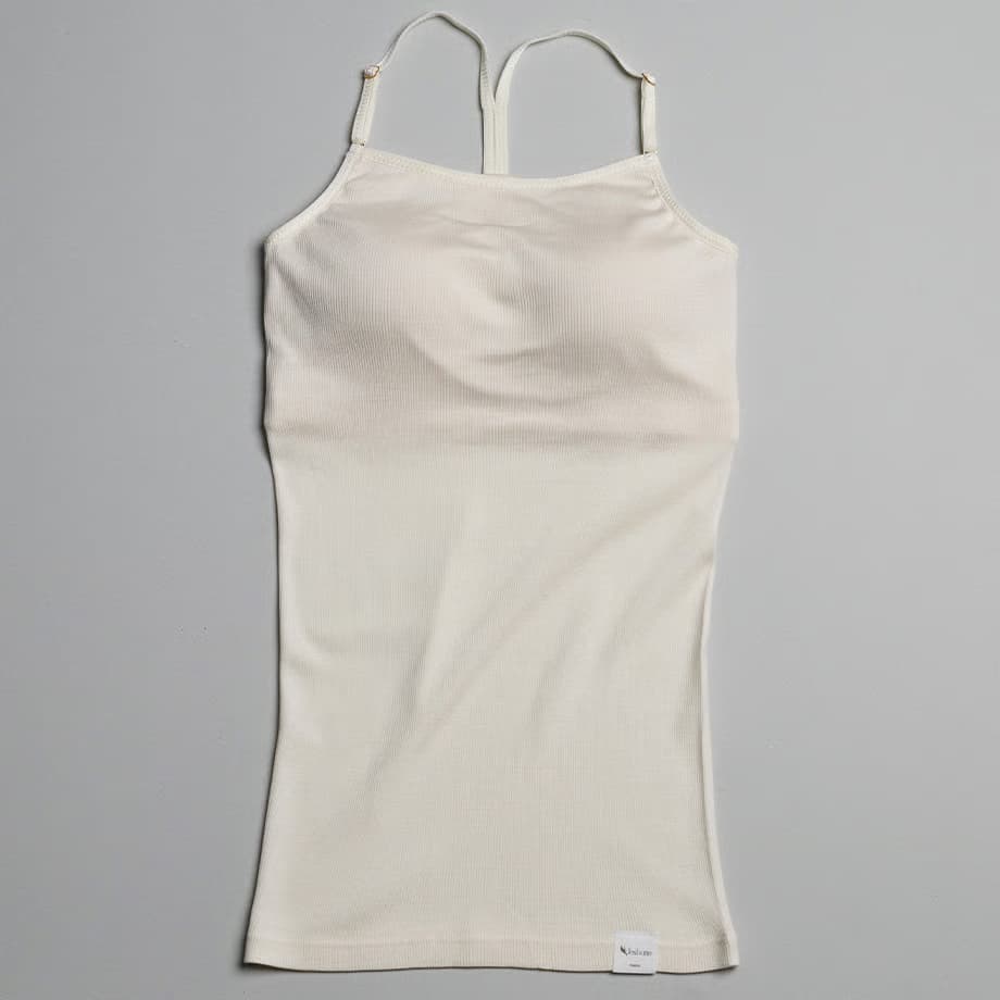 フロントはすっきりストレート、バックはY字のレーサーバックデザインです。あえて、インナーぽくない仕上がりにしました。アウターから透けて見えてもオシャレ◎