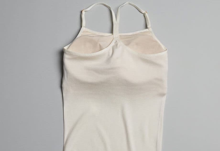 「レザーバックデザインのブラ付きキャミ」
