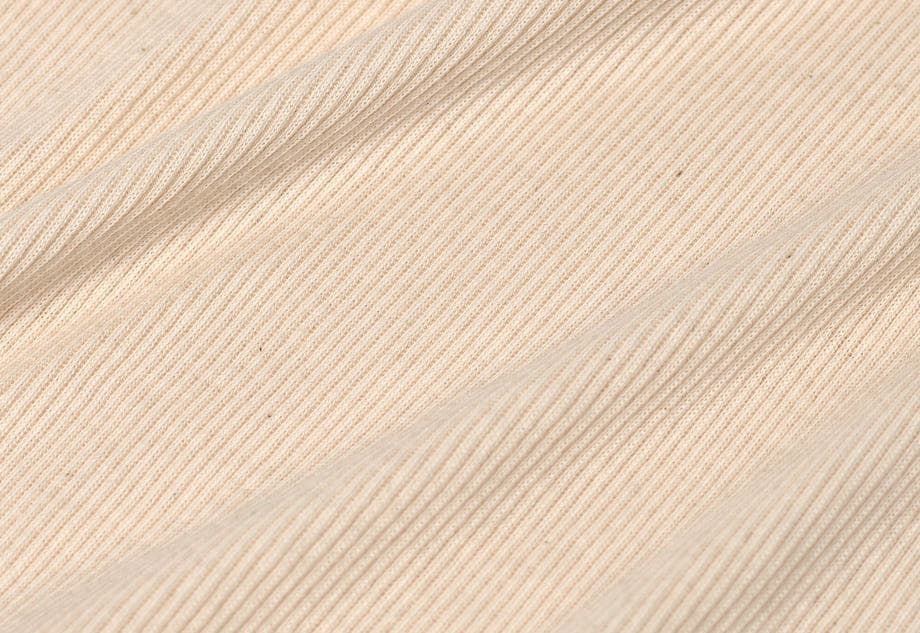 100%シルクで伸縮性を持たせるために、リブ編みに仕上げました。ふわっと伸びて優しく包み込むようにフィットする感触が「やみつき」になります。リブ編みの凸凹感があることで、肌への接地面が少なく夏はさらりと、冬は空気を含んで暖かいのです。