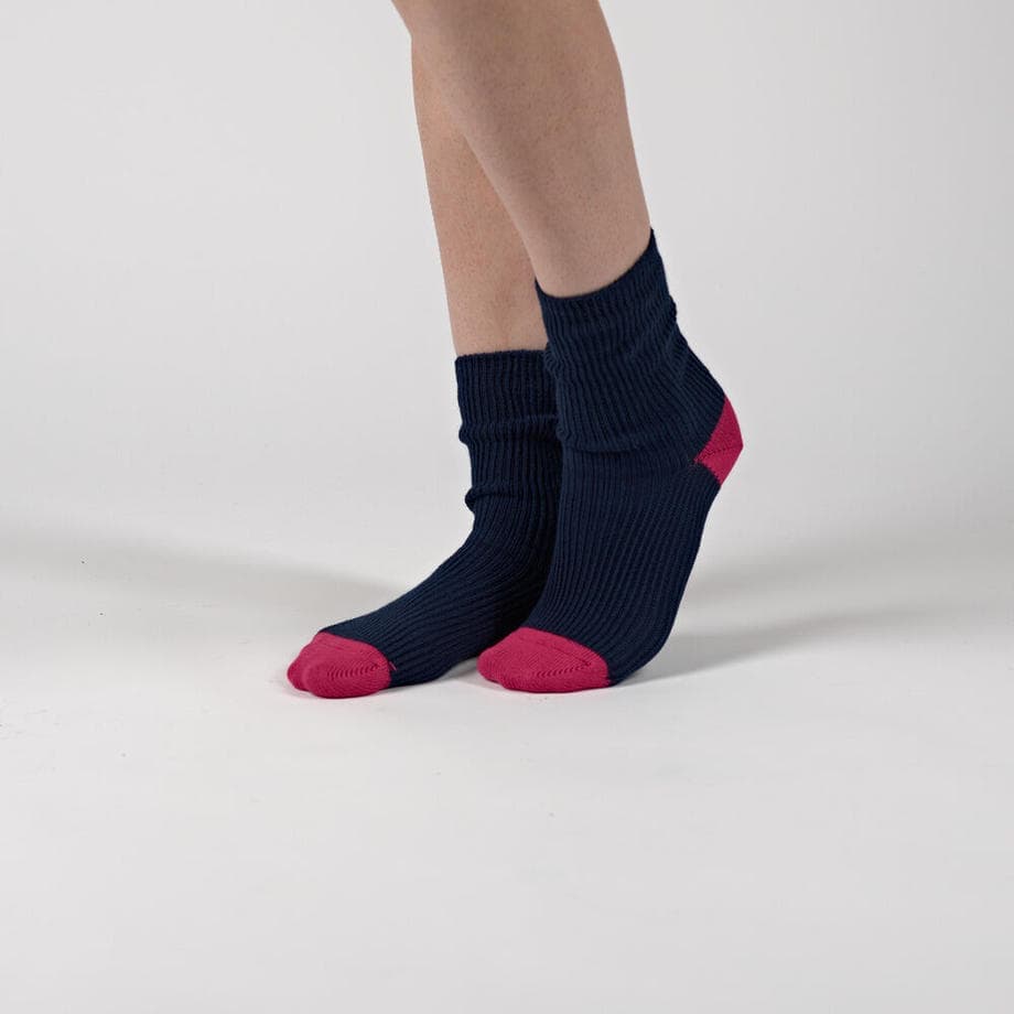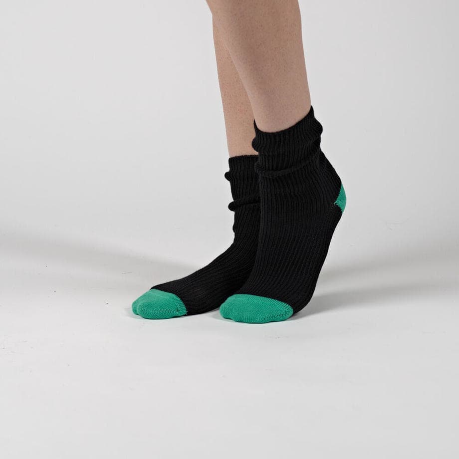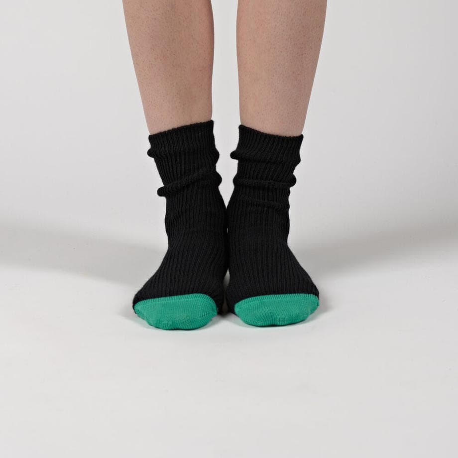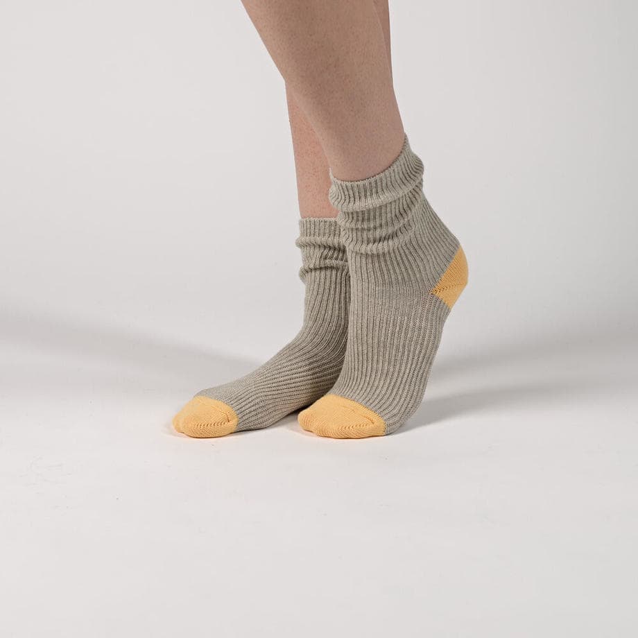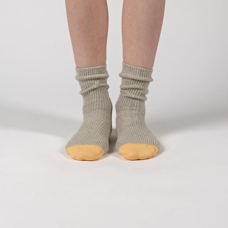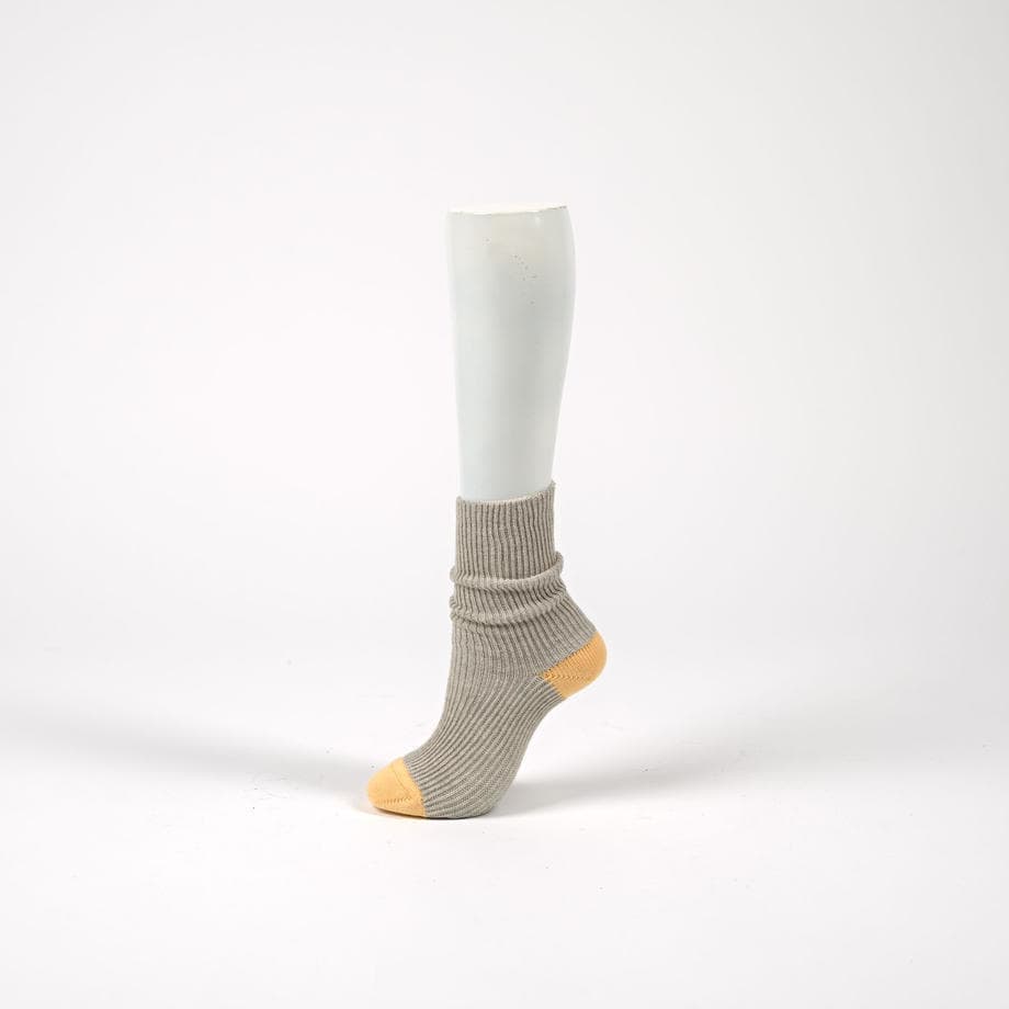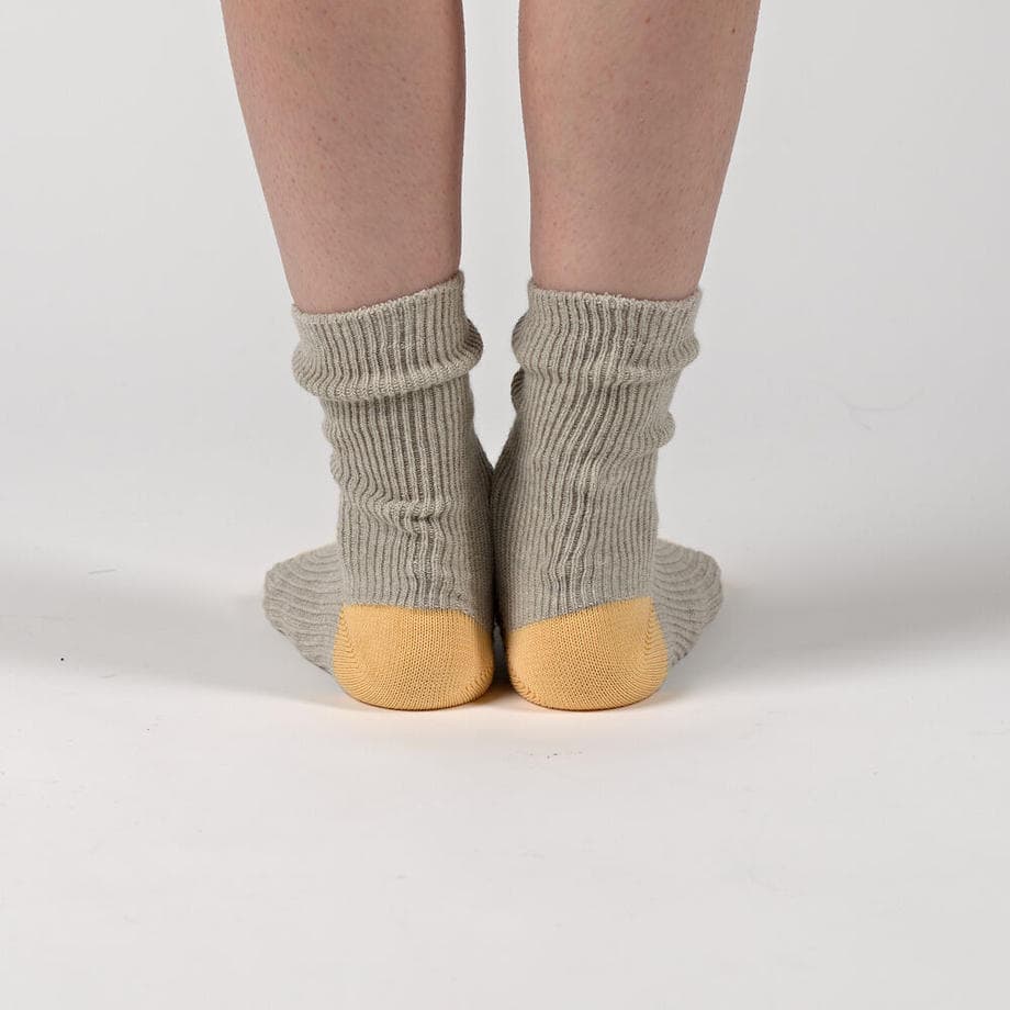 ゆるく履けて、リラックスできるリブ編みソックスが由来です。靴下の締め付けがなく、やさしく包み込む履き心地にこだわり、何度も試作を重ねて誕生しました。