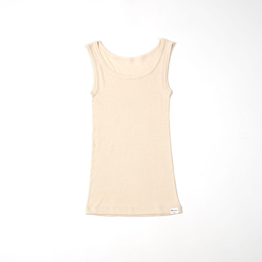 丸編みの編機で筒状に仕上げているので脇縫いがなく、縫い目が肌にあたる事なく快適な着心地です。