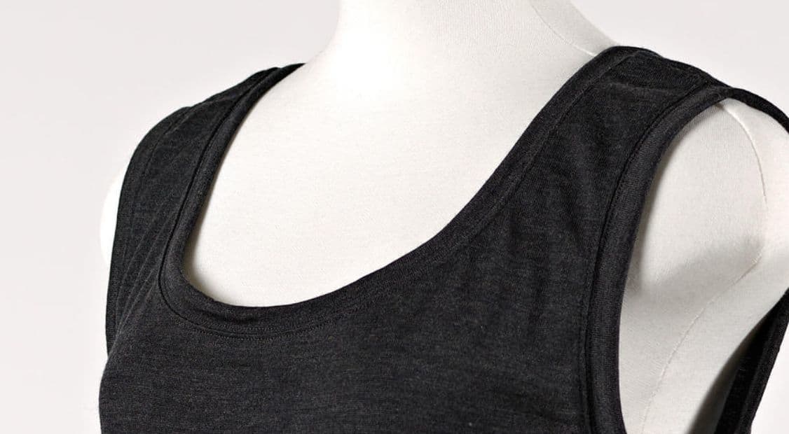 Tトップ感覚で着用できるように、少し詰まったネックラインにこだわりました。アウターから見せても下着っぽくない衿開きです。